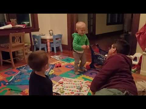 The kids have been enjoying playing a game called Kids of Stage, which is basically a junior version of charades. As you can see, Spencer is elated when someone guesses what his card was.